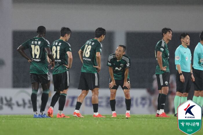 [김천=스포츠조선 김가을 기자]유효수팅 0개, 볼 점유율 32%. K리그 ‘리딩클럽’ 전북 현대의 암울한 현실이다. 김두현 감독이 이끄는 전북 현대는 14일 김천종합운동장에서 열린 김천 상무와의 ‘하나은행 K리그1 2024’ 원정 경기에서 0대4로 완패했다. 전북(4승8무11패)은 11위를 기록, 강등권 탈출에 실패했다. 경기 전까지만 해도 희망의 기류가