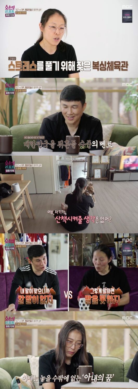[OSEN=임혜영 기자] ‘챔피언 부부’ 남편이 가부장적인 발언으로 MC들을 놀라게 했다.2일 방송된 MBC ‘오은영 리포트 – 결혼 지옥(약칭 결혼지옥)’에서는 두 아들을 교육하는 가치관이 너무 다른 ‘복싱 챔피언 부부’가 등장했다.아내는 아이들을 위해 새벽 5시에 일어나 김밥 만들기를 시작했다. 아이들을 등교시킨 후엔 한 시간 반 정도 러닝을 했다. 아