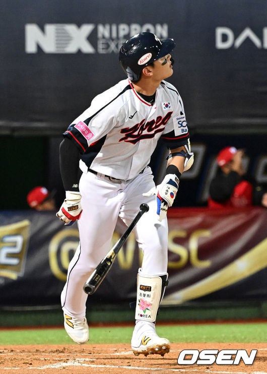 [OSEN=타이베이(대만), 이후광 기자] ‘국제용 타자’ 윤동희(롯데 자이언츠)가 프리미어12 대비 최종 평가전에서 기분 좋은 선제 솔로홈런을 쏘아 올렸다. 윤동희는 10일 대만 타이베이 티엔무야구장에서 열린 대만 프로팀 웨이치안 드래곤즈와의 2024 WBSC 프리미어12 대비 최종 평가전에 5번 우익수로 선발 출전해 첫 타석에서 홈런포를 신고했다.윤동희