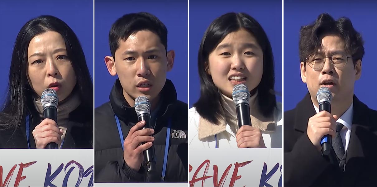 젊은 연사들이 맹추위 속에서도 대한민국의 자유를 지키기 위한 소신 발언을 이어갔다. 8일 정오 여의도 국회의사당로에서 열린 세이브코리아 국가비상기도회 서울 집회에서는 한동대학교 김지현 교수, 고신대학교 신학과 정병하 학생, 성균관대학교 국정전문대학원 입학 예정자 유지혜 학생, 하나로교회 박숭걸 전도사 등 청년 연사들이 집중적으로 무대에 올랐다.