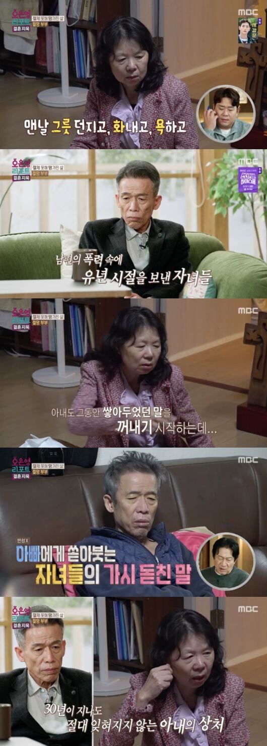 [OSEN=임혜영 기자] ‘절망 부부’ 남편이 술 때문에 입원도 했었다.10일 방송된 MBC ‘오은영 리포트 – 결혼 지옥’(이하 결혼지옥)에는 365일, 24시간 절제 없이 술을 찾는다는 남편과 남편의 술 문제로 37년 결혼생활이 망가졌다는 아내, 절망 부부가 등장했다다 같이 모인 가족은 저녁 식사를 했다. 첫째 딸은 “아빠가 음주 운전으로 폐차를 했는데