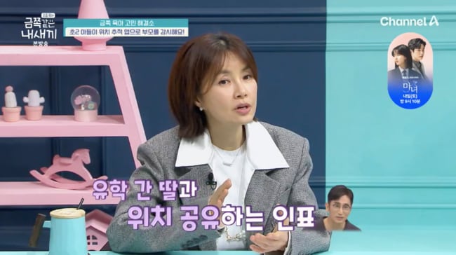 [OSEN=박하영 기자] ‘금쪽같은 내 새끼’ 배우 신애라가 남편 차인표가 딸을 걱정해 위치추적 앱을 깔았다고 밝혔다. 28일 방송된 채널A ‘요즘 육아 – 금쪽같은 내 새끼’에서는 위치 추적 앱 때문에 고민이라는 사연에 신애라이날 금쪽 육아 고민 해결소에는 ‘초2 아들이 위치 추적 앱으로 부모를 감시해요’라는 사연이 공개됐다.사연자는 “아들에게 생긴 유별