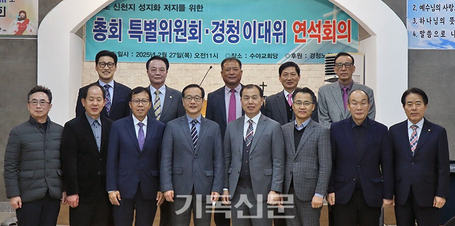 신천지성지화저지특별위원회(위원장:김재만 목사)가 2월 27일 경상북도 청도군 수야교회(김재만 목사)에서 경청노회 이단대책위원회(위원장:송석우 목사, 이대위)와 연석회의를 개최했다. 회의에서는 신천지의 부동산 매입 움직임이 포착된 현리 마을 상황을 공유하면서, 지역 주민 설득과 봉사활동 등 저지 방안을 모색했다.