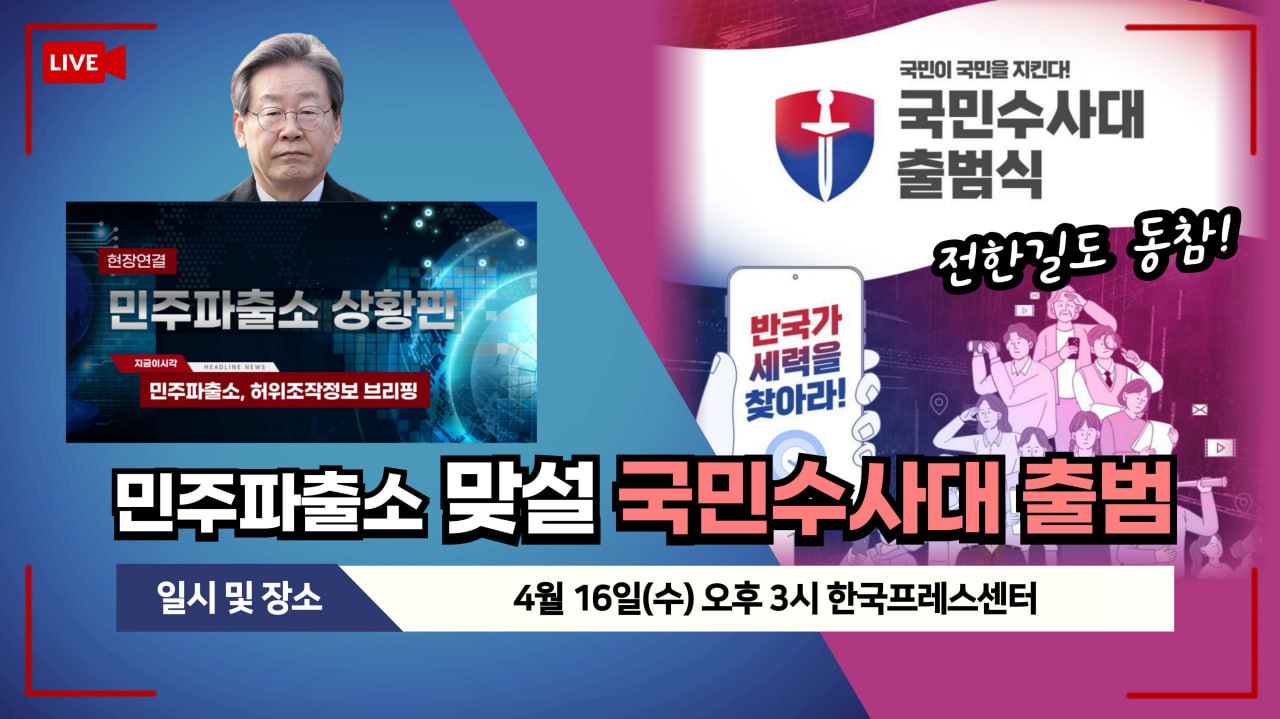 시민 참여형 공정사회 감시 플랫폼을 표방하는 ‘국민수사대’가 16일 서울 중구 한국프레스센터에서 발족식을 갖고 본격적인 활동을 시작했다. 국민수사대는 “법치·공정·상식의 회복”을 기치로, 가짜뉴스 신고 및 시민제보 플랫폼을 중심으로 한 감시 활동을 예고했다.
