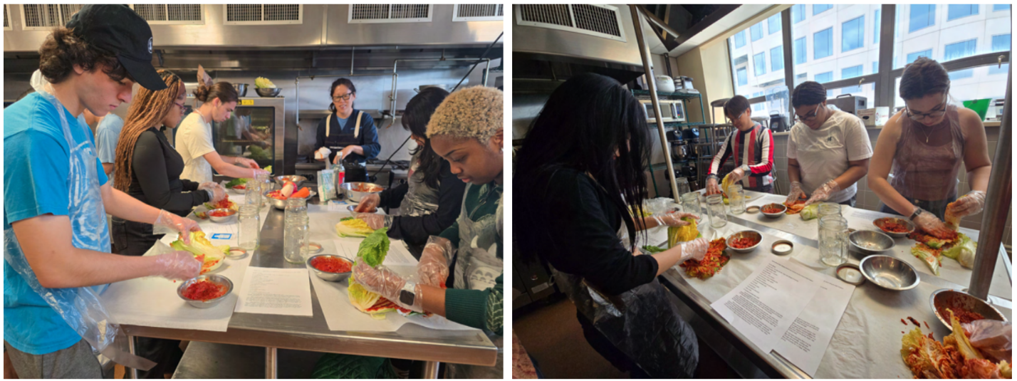 이날 워크숍은 클라라 박 셰프의 시연으로 시작되어, 학생들이 절인 배추에 양념을 직접 버무리며 김치 만들기 전 과정을 체험하는 방식으로 진행되었다.