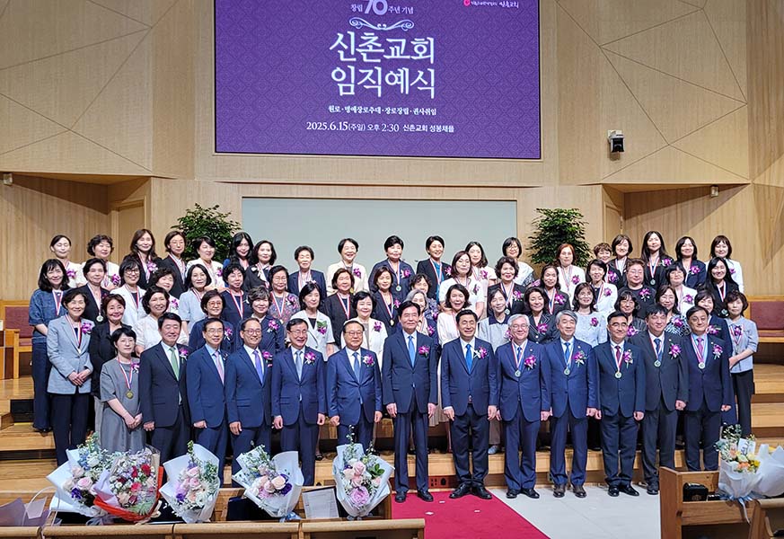 창립 70주년을 맞이한 신촌성결교회(담임 박노훈 목사) 임직예식이 지난 6월 15일 오후 서울 마포구 신촌성결교회 성봉채플에서 개최됐다.