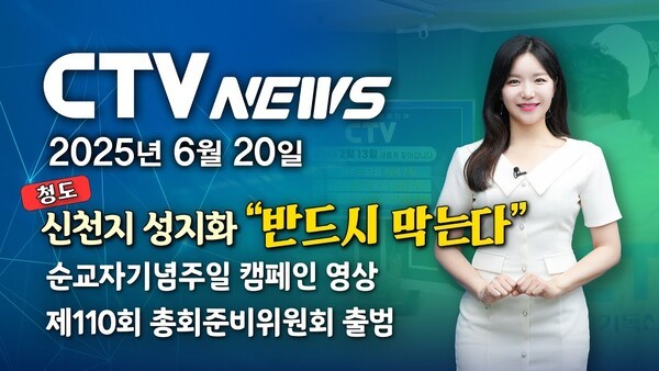 CTV 6월 셋째 주 뉴스입니다. 교단 안팎의 주요 이슈를 엄선한 CTV 뉴스! 여러분의 삶에 유익한 좌표가 될 것입니다.00:58 [FOCUS] 신천지 저지 결의대회05:22 [KEYWORD1] 제110회 총회준비위원회 출범07:36 [KEYWORD2] 산불TFT 해단식09:48 [KEYWORD3] 순교자기념주일 캠페인 다큐영상 소개