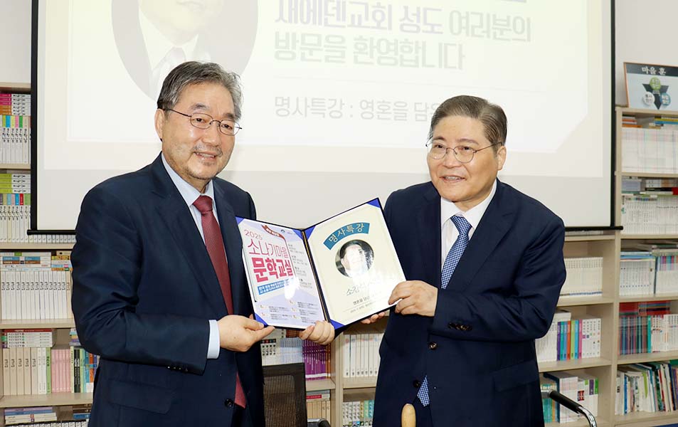 매주 목요일 경기 양평 황순원문학관 작은도서관에서 열리는 황순원문학촌 소나기마을 문학교실. 2025년 하반기 첫 모임인 7월 3일 오후에는 이례적으로 작은도서관이 보조의자까지 청중으로 가득 찼다. 지난해 제13회 황순원문학상 수상자인 소강석 목사(새에덴교회, 한국교회총연합 전 대표회장)의 강의를 듣기 위해서다. 총 13권의 시집을 펴낸 소 목사는 앞서 ‘어느 모자의 초상’으로 천상병문학대상, ‘다시, 별 헤는 밤’으로 윤동주문학상을 수상하기도 했다.