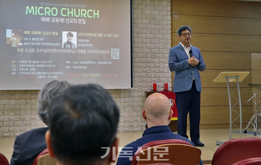 “교회 개척은 건물부터 찾지 않아도 됩니다. 예배, 공동체, 선교만 붙잡으면 됩니다.” 조성돈 교수(실천신학대학원대학교)는 최근 열린 ‘마이크로 처치 세미나’에서 한국교회가 이제는 본질로 돌아가야 한다며 이같이 강조했다.작은교회를 넘어 예배와 선교의 본질을 추구하는 마이크로 처치(Micro Church) 세미나가 7월 3일 서울 종로구 초동교회에서 개최됐다. 이날 마이크로 처치 전문가라 불리는 아담 리 펠드만 교수(메트로 볼티모어 신학대학)는 미국 볼티모어 지역에서의 실제 마이크로처치 사례를 소개하며 “마이크로 처치는 전략이 아니라