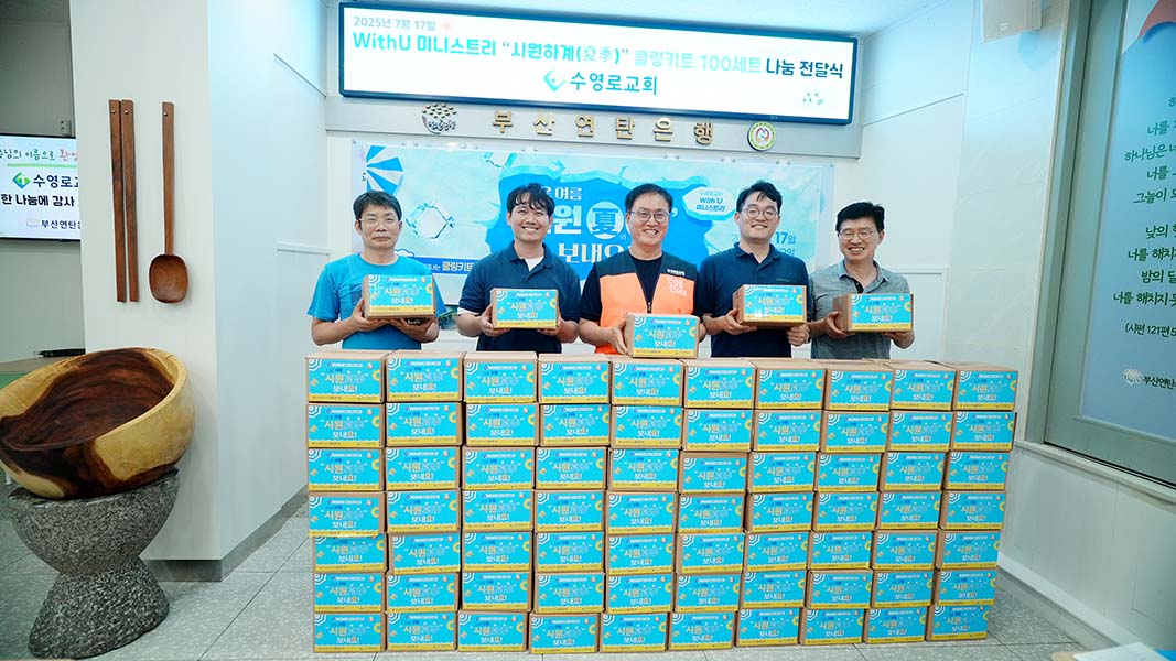 부산 수영로교회(담임 이규현 목사) 위드유 미니스트리가 지난 7월 17일, 무더운 여름 폭염 속에서 냉방에 취약한 이웃들을 위해 300세트의 쿨링키트를 제작·전달하는 여름 구호 사역 ‘시원하계(夏季)’를 진행했다.