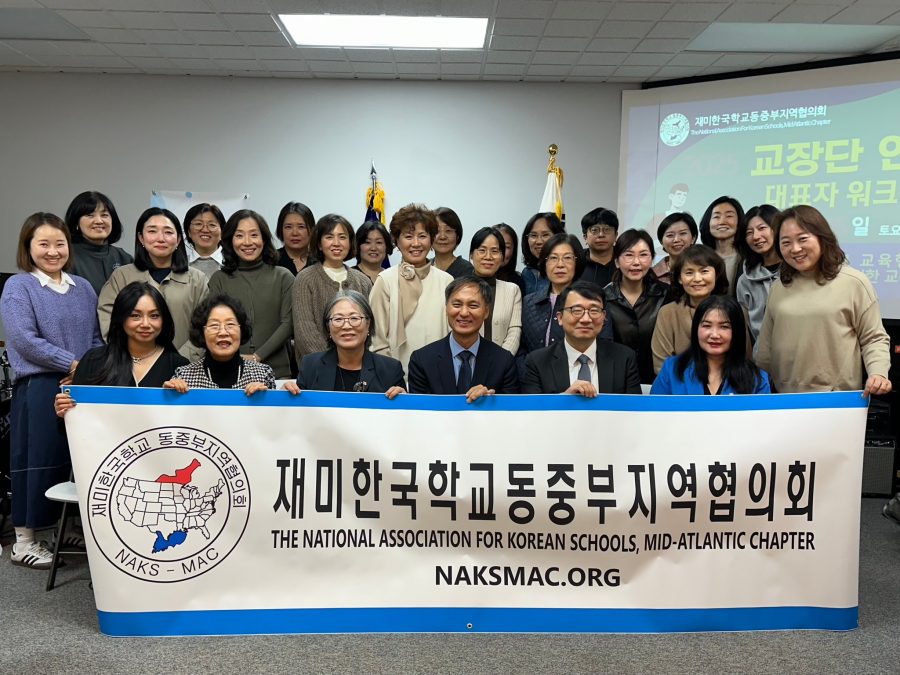 재미한국학교 동중부지역협의회 (회장 조수진)가 주최하고 재외동포청과 주 뉴욕총영사관 필라델피아 출장소가 후원한 교장단 연수 및 대표자 워크숍이 지난 11월15일 토요일 오후4시에 몽고메리 한국학교에서 동중부 협의회 산하 18개 학교에서 온 26여명의 대표자들이 참석하여 2025년 교장단 연수가 실시되었다.