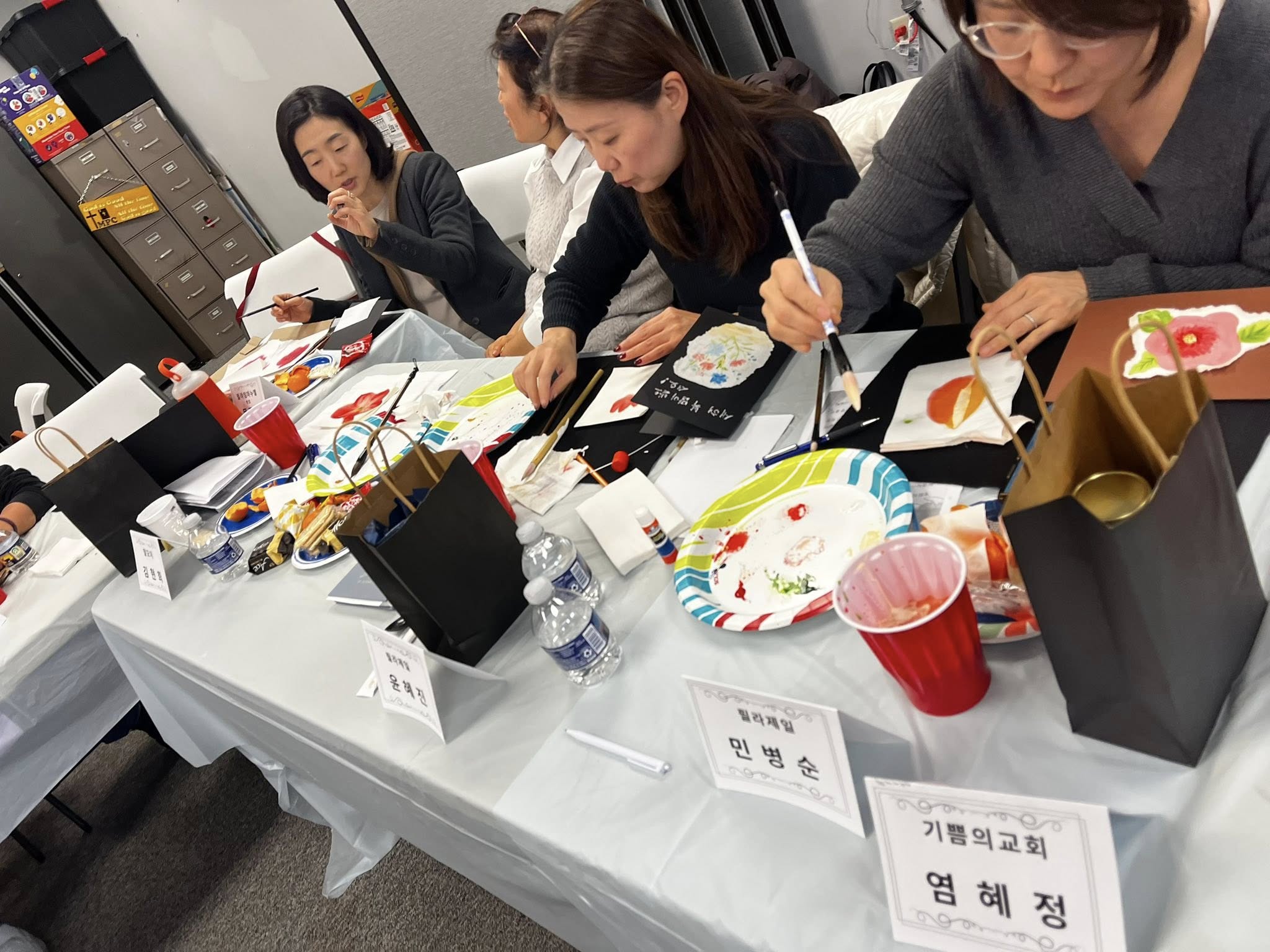 참석한 교장단 및 대표자들이 미술 특강시간에 연하장을 만들고 있다