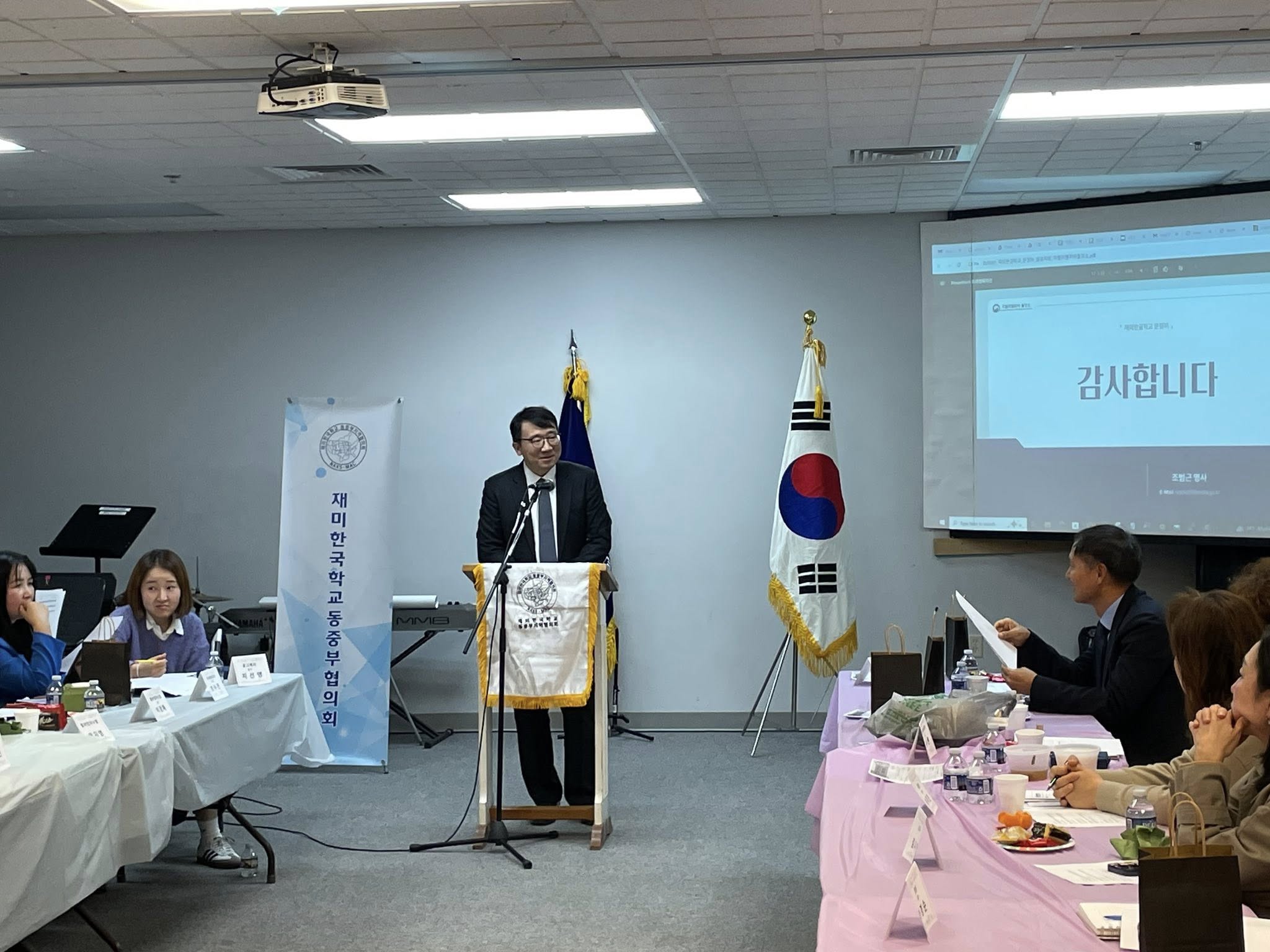 특강 첫 시간으로 조범근 영사(주 뉴욕총영사관 필라델피아 출장소)는 재외한글학교 운영비 지원금 관련 꼭 알아야 할 정보를 설명하면서 특히 재외동포청의 맞춤형 지원금 관련 집행 준수 사항 등을 자세히 안내하고 질의 응답 시간을 통하여 달라진 점을 이해하고 이를 잘 활용할 수 있는 유익한 시간을 가졌다.