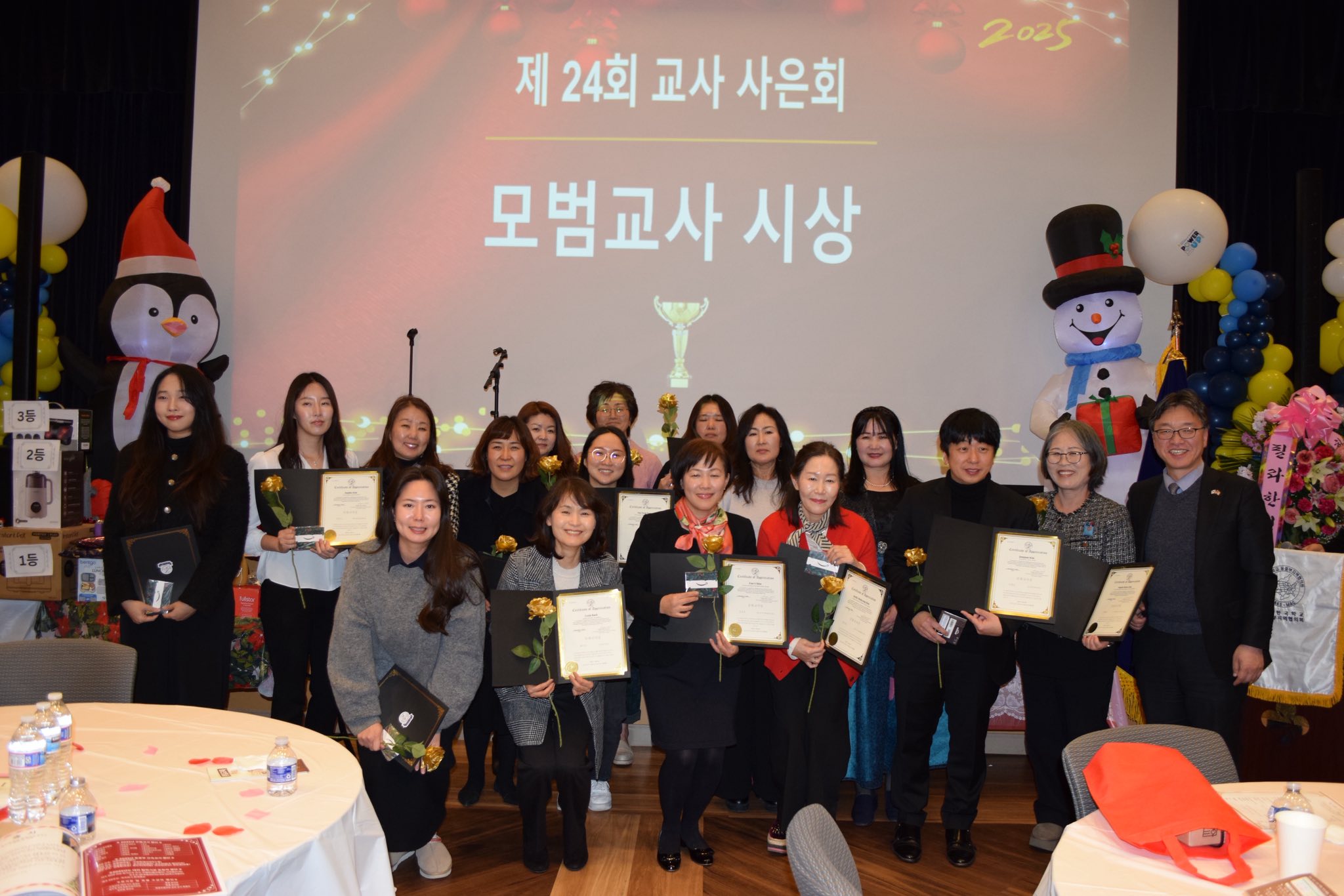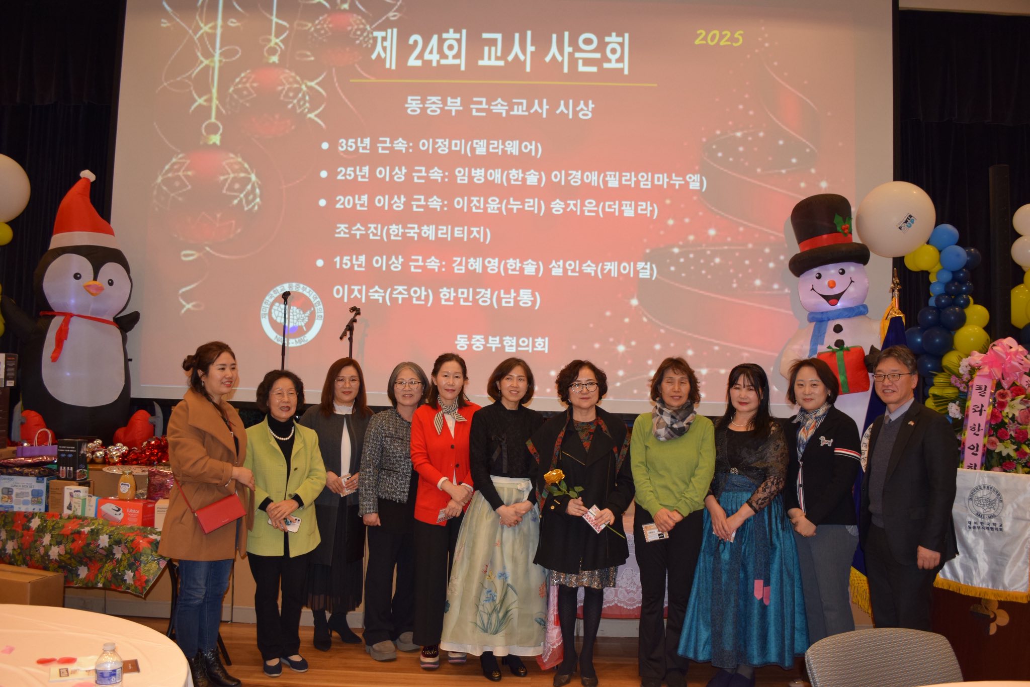 재미한국학교 동중부지역 협의회(회장 조수진)는 지난 12월 6일 (토) 오후 5시에 동중부협의회 창립 25주년 기념하며 2025 년을 마무리하며 교사들의 수고를 격려하는 의미의 “교사 사은회 행사”를 펜아시안 노인 복지원 에버그린린 센터에서 개최했다.