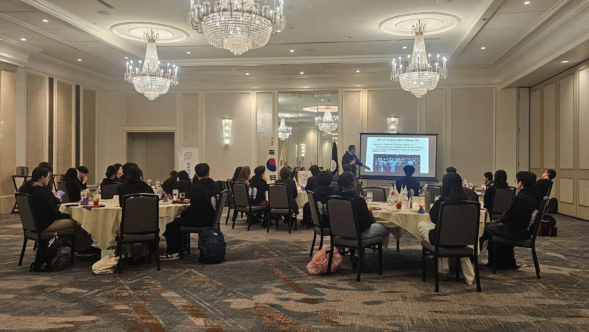 1부 강연에서는 백승원 지부장과 Landon Synnestvedt 변호사(필라델피아 흥사단)가 “도산 안창호 선생의 리더십 정신과 차세대 지도자의 역할”을 주제로 강연을 진행했다. 강연에서는 안창호 선생의 리더십과 공동체 정신을 강조하며, 차세대 지도자로서 갖추어야 할 가치와 책임을 공유했다.