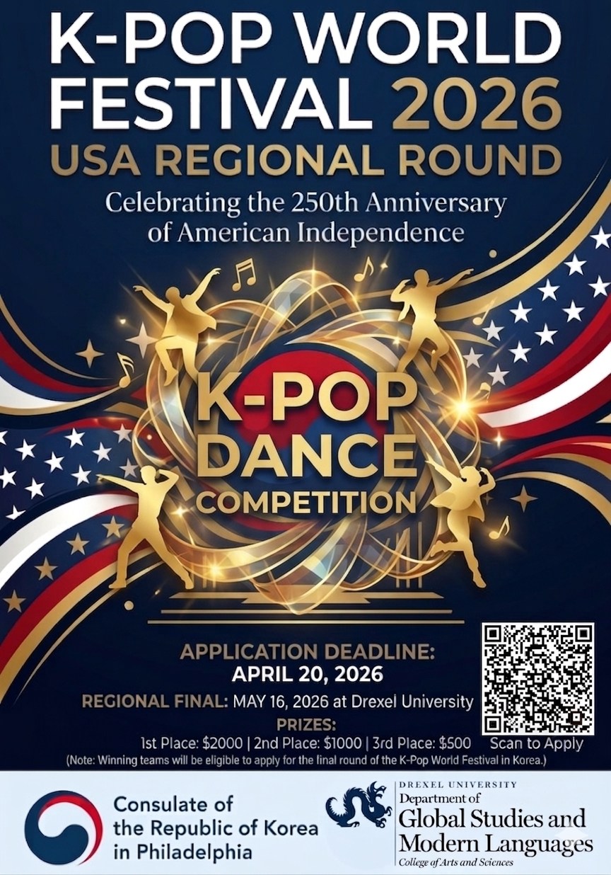 미국 건국 250주년을 기념하여 K-POP 댄스를 중심으로 한 대규모 문화 행사가 열린다. 드렉셀 대학교가 주최하고, 뉴욕총영사관 필라델피아 출장소가 후원하는 ‘2026 K- Pop World Festival’ 미국지역 예선전이 오는 4월과 5월에 걸쳐 개최된다.