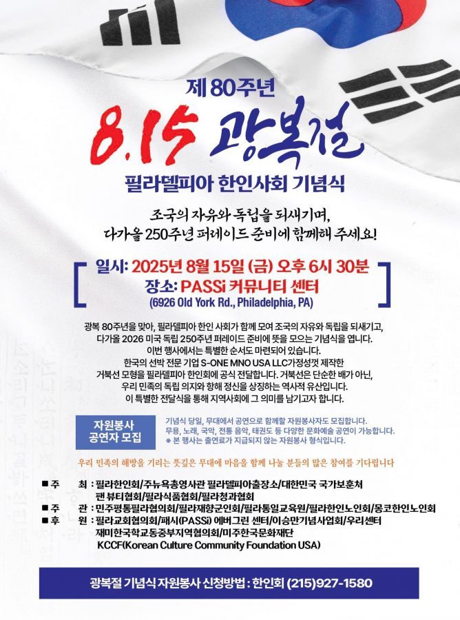 Read More제11회 한국문화 여름캠프 “한국의 소리” 개최 차세대 한인 청소년들을 위한 전통문화 체험의 장, 8월 9일(토) 필라델피아에서 열려 재미한국학교 동중부협의회(회장 조수진)는 2025년 8월 9일(토), 대한민국 재외동포청의 후원으로 제11회 한국문화 여름캠프 “한국의 소리” 공연을 목양교회(1400 North Hills…